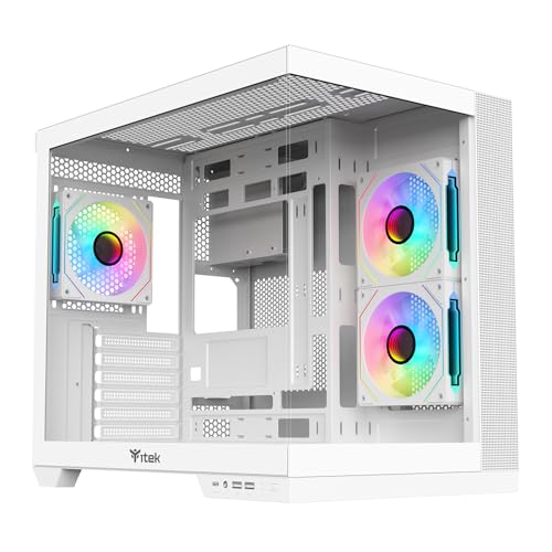 🇮🇹 Itek Case DARK CAVE DS - Case Gaming ATX, 3 ventole da 12cm ARGB, 2x USB3, 1x Type-C, vetro temperato frontale e laterale, White Ed.